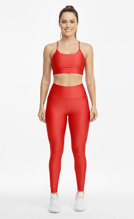 Sofisticação do Brilho: O tecido possui um acabamento "glow" (brilho sutil) que eleva o status da peça, transformando um conjunto básico em um look moderno e elegante, ideal para quem quer treinar com estilo.